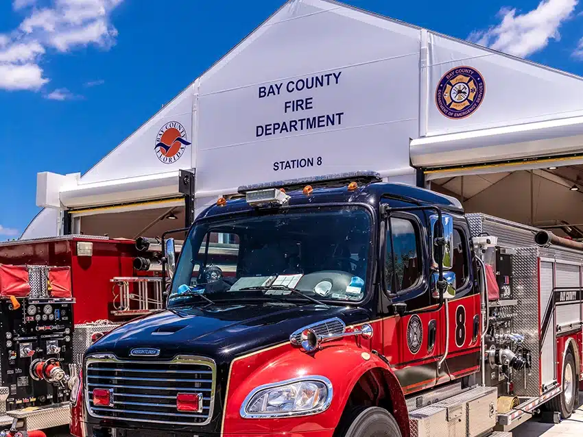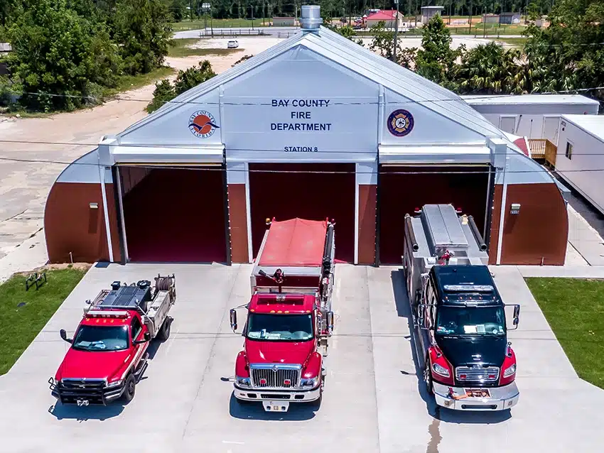 Sprung delivered two fully insulated structures to replace the damaged stations at Southport and Hiland Park. Bay County used FEMA funds to purchase the two Sprung structures, and the project came in at one-third the cost of a conventionally built facility. In addition, the structures were built to Miami-Dade County code compliance for hurricanes and were complete within six months of Sprung being awarded the contract.