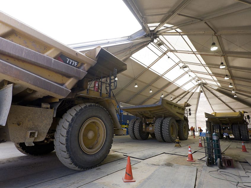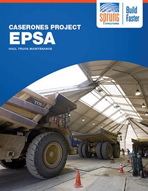 EPSA contacted Sprung to supply a structure measuring 30.4 m (100’) wide by 53.4 m long (175’). Our proven track record at mining locations around the world, speed of delivery and construction, lightweight aluminum substructure, and relocatable design were all contributing factors in EPSA selecting Sprung as the product of choice for this demanding application.