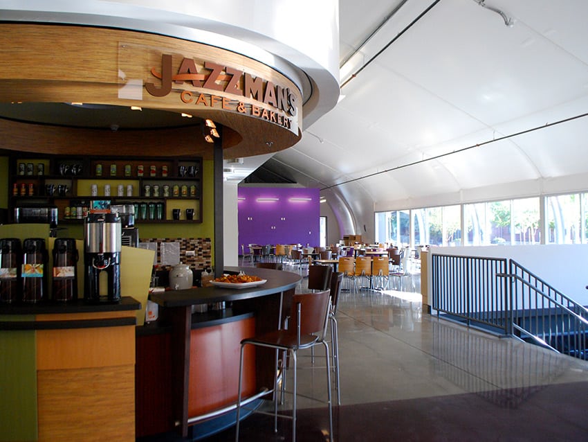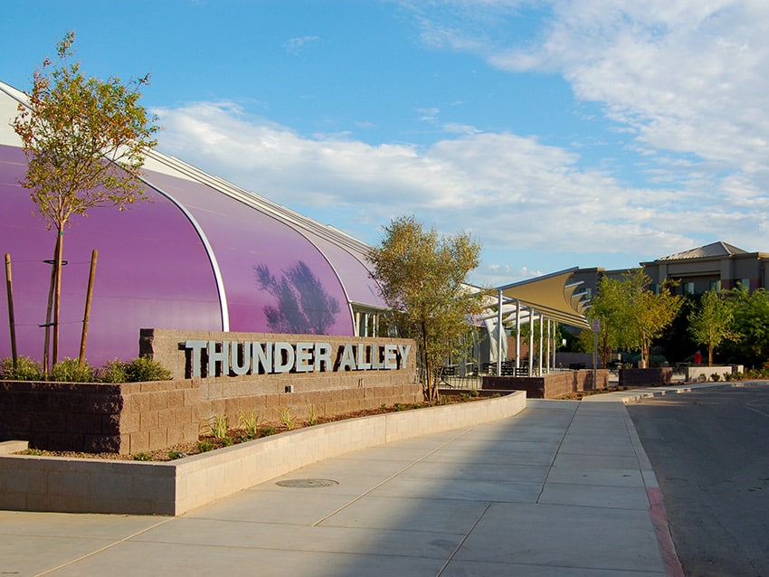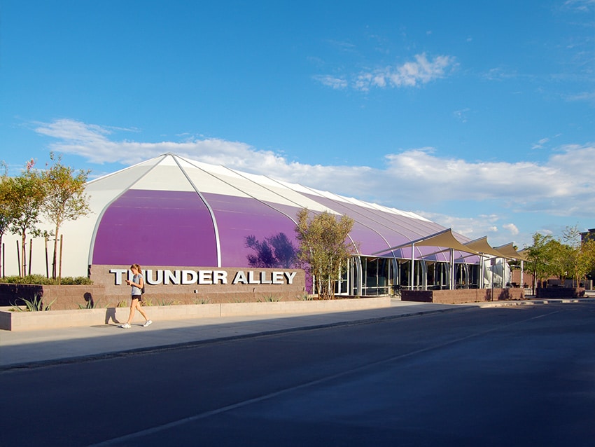 Thunder Alley offers three different choices of cuisine, a store for sundries and a complete bowling alley. Sprung supplied a custom purple architectural membrane to match Grand Canyon University colors.